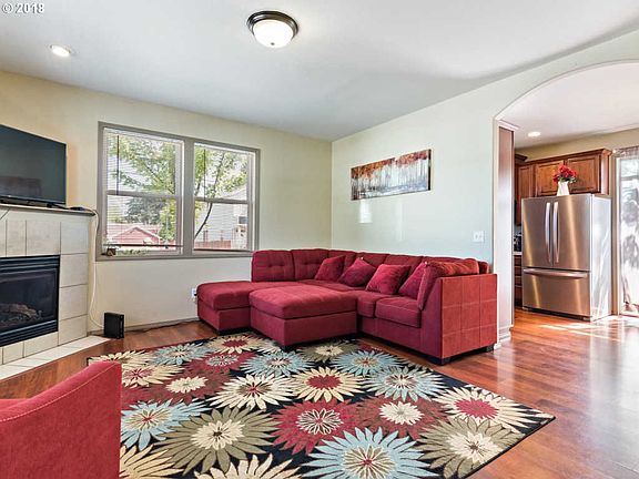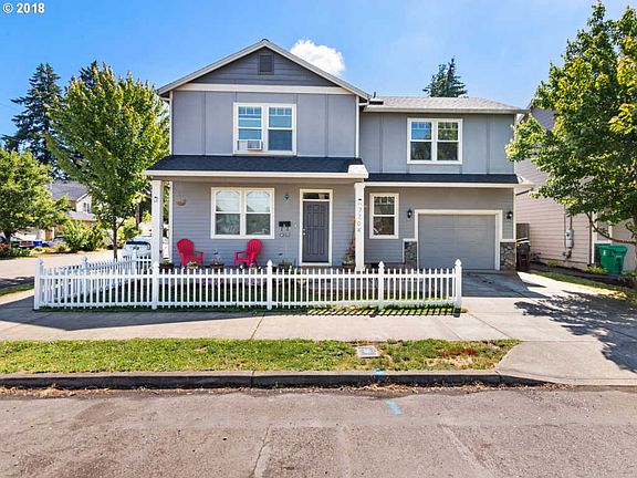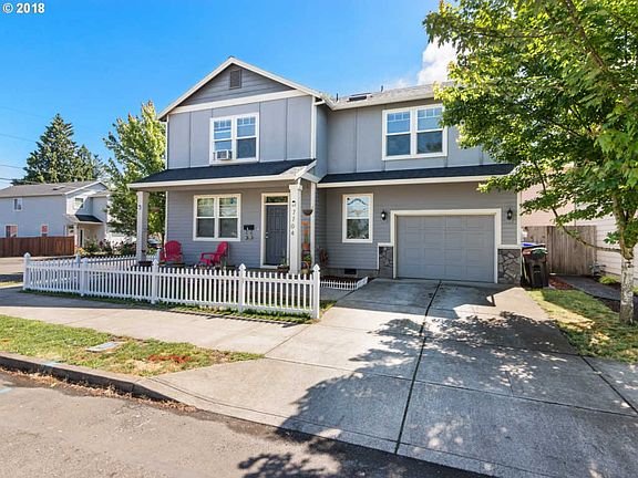 Such a charming home, complete with white-picket fence and welcoming porch. Open layout with living room archways flowing into dinning room and kitchen. Gorgeous kitchen with plenty of cabinet space. Master suite features vaulted ceilings, double closets. Slider leads to fenced backyard with nice patio area. Newer water heater. Conveniently located between Woodstock shops & restaurants and I205 for easy commuting. [Home Energy Score = 7. HES Report at https://api.greenbuildingregistry.com/report/hes/R144671-20180611]