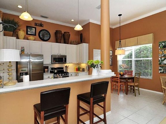 IMMACULATE, UPGRADED, UPDATED In maintenance free neighborhood. Offering 4BR and two beautifully refitted bathrooms. 2,139 SF. Features include glass double entry doors, high ceilings w/crown molding, quality light fixtures & fans. Kitchen has stainless appliances, Corian counters & tiled backsplash. Living room has pocketing glass sliding door to lovely pool area overlooking lake. This home shows like a model. A3955601 $375,000