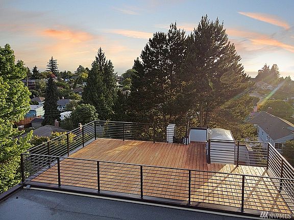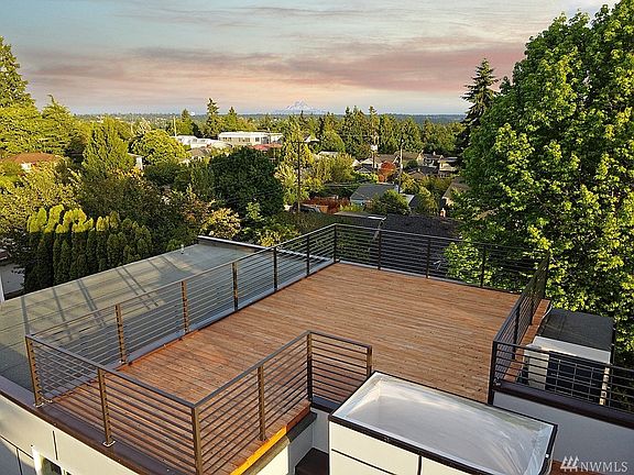 Stunning Luxury Modern Home! Generous 2,762 sf home w/ 3 beds + lower level bonus room/office. Open main level offers kitchen w/ massive island, breakfast nook, dining, & spacious living room w/ gas fireplace. Luxurious Owner Suite with spa-like bath w/ heated floors, walk-in closet & covered balcony. Designer finishes including incredible tri-level open staircase w/ skylight & LED chandelier. Rooftop deck w/ Mt. Rainier & Sound views.Rare 2 car garage! Efficient w/ central vac & AC.Solar ready!