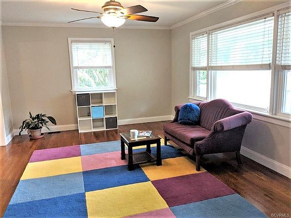 Welcome to your new low maintenance, 3-4 bedroom, 2.5 bath all-brick tri-level with country front porch in sought-after Skipwith Farms. This home has great curb appeal in a park-like setting with mature hardwoods and well-manicured landscaping. The interior features hardwood floors throughout the first and second floors. The first floor has a living room that flows nicely into the updated, eat-in kitchen. The master bedroom has an attached bath with shower, and all 3 bedrooms have hardwood floors. Need a 4th bedroom? Check out the basement (street level) bonus room with half bath and closets located in the hallway just outside the room! The family room with gas fireplace is also located on the same level. Laundry room has floor-to-ceiling storage cabinets and washer/dryer which convey. This home has been meticulously maintained. There is new paint throughout, freshly polished hardwood floors, newer vinyl replacement windows, two storage sheds, and new flip-clean gutters. Welcome Home!