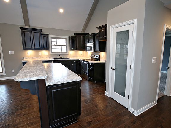 Come visit this very unique home. Great one story plan that has it all! A MUST SEE! This three bedroom, two full bath gem has approx. 1819 sq.ft. and sits on a PRIVATE lot (Wildlife Protective Area). It's like a model for quality and craftsmanship. It's like a model for convenience and comfort. It's like a model for design and value. This home comes with custom hardwood floors, tiled bathrooms (must see) and laundry room, covered back deck, and a first floor master suite. It has a 2-car garage and an unfinished walkout basement with 10 ft ceilings. The basement has a ton of potential and is plumbed for ANOTHER bathroom. This home features eye-catching vaulted living room and kitchen ceilings, complete with mantled custom stone fireplace, a spacious eat-in kitchen with functional island