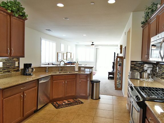 2BR, 2BA 1,371 sf Glenbrooke charmer. This popular Randal floor plan features a large gourmet kitchen with granite counters and stainless appliances which is open to the living and dining area. Plantation shutters throughout. Backyard is perfect for dining out and entertaining but also low-maintenance. Come see all that this active adult community has to offer and experience the Del Webb lifestyle and amenities for yourself.