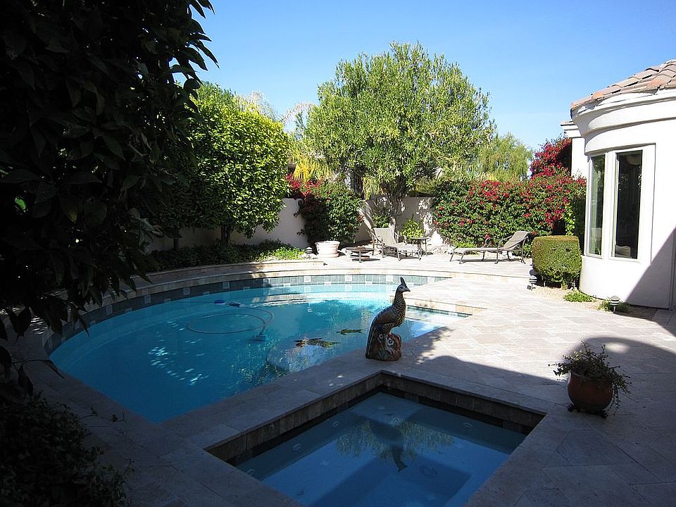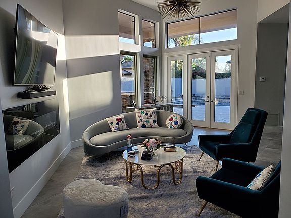 Truly incredible, complete 2021 remodel in & out, 2BR+Den or 3BR! Resurfaced (pebblesheen) Spa & Pool w/ all new equipment installed in 2019, including complete back & front yard landscaping remodel (2020). Tile inlays, baha shelf, fun fountains & remote control system. Tiled patio & beautiful new outdoor stacked-stone facade kitchen/bar & grill area w/seating. All new energy-efficient windows and doors installed in 2021. Large gray ceramic tiles throughout the main house, and distressed wood floors in all bedrooms. Wolf & Subzero appliances, custom kitchen cabinets, and a Modern Flame fireplace. Full home automation and security system to control all entry/exits, thermostats, lighting, and door locks from anywhere in the world. Garage built-ins, high-end full-house water filtration & softener, and a new water heater (2022). Custom drapes throughout the house, new Bosh high-SEER variable speed airconditioning systems (2020) with air scrubbers. Three-zone sound system inside & out. New high-end roof underlayment was installed in 2022 with a 25-year warranty.
