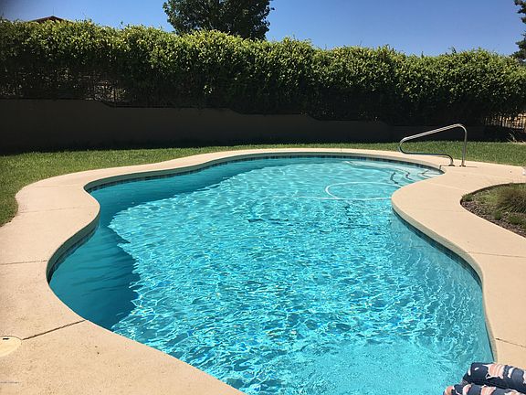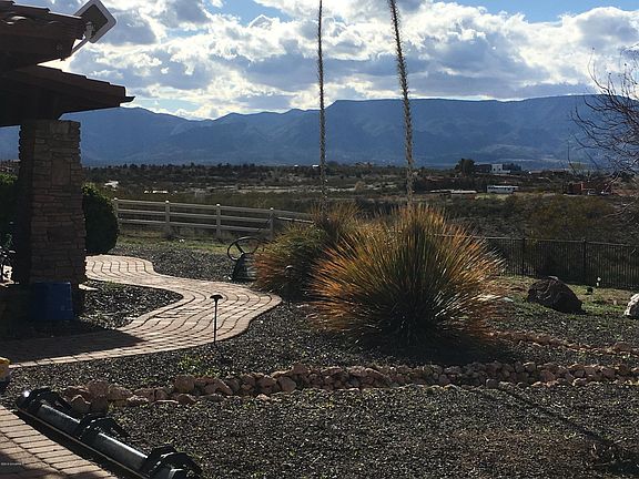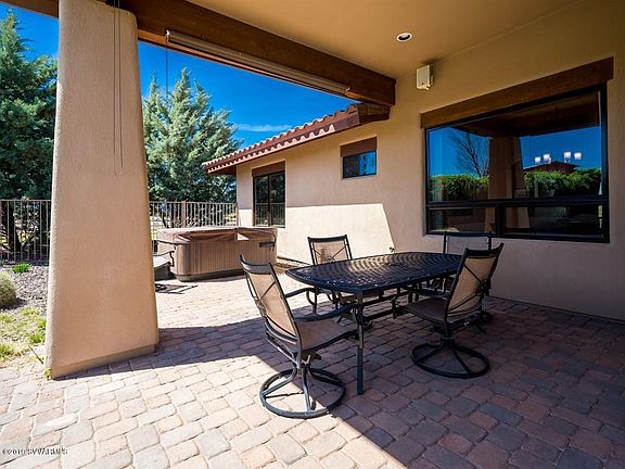 Come take a fresh look! Newly painted interior means home is now light and bright! 4-acre horse property offers panoramic views and something for everyone. Close to Wine Country, golf, hiking and riding trails, and a hop and a skip to Sedona. Features include, slate flooring, large picture windows,10-foot ceilings, stunning stone fireplace, and wood beamed ceilings. Kitchen boasts Granite counters,Walnut finish cabinets, coffee bar, and top of the line GE appliances. Master Suite has whirlpool tub, large walk-in closet and his and hers vanities. Third bedroom does not have closet, was used as a study/office. Property features include a lovely covered patio, pool, and hot-tub. with beautiful brick pathways and xeriscaped front yard. Backyard with pool and grass is very private and serene.