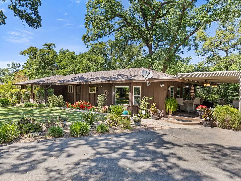 Country living at its BEST - space, tranquility, peaceful, and just minutes to shopping and freeway access. This charming ranch style home is nestled on almost 6 acres of serene landscape, surrounded by mature trees that provide natural cooling and privacy. Owned and loved by the same family for over 50 years, it's now ready for its next chapter. Inside you will find original hardwood floors, a cozy fireplace, and a whole house fan to keep the home cool. Major updates include a new roof and attic insulation in 2017, HVAC system in 2020, plumbing in 2022 and a new electrical panel in 2024. Relax on the side patio and enjoy the peaceful sounds of nature - birds chirping and the occasional deer passing through. A large 36 x 24 detached garage offers plenty of space for storage, a 20 foot workshop table or space for hobbies. Plus, the tractor stays with the property. A rare blend of charm, space and convenience - don't miss this opportunity!