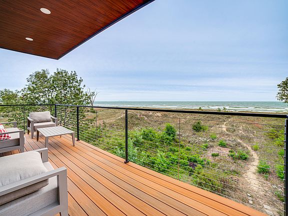 Modern and Sleek on Lake Michigan lakefront. This 2024 masterpiece designed by DeSalvoFlorian and built with European craftsmanship is situated on nearly 10,000 sqft of Lake Michigan frontage. Functional yet Indulgent. With over 2800sqft of living space, this 4-bedroom 3.5 bath has it all and then some: a spacious owner's suite with a deck overlooking the lake, a 2.5 car heated garage, heated floors, irrigation system, three decks overlooking the lake and Chicago's skyline, a sauna, a firepit, a greenhouse and outdoor shower, top of the line kitchen with stone countertops and Bosch appliances, a real backyard with a long driveway and more! There hasn't been anything available like it on the water. Other highlights include nearly 200k invested in floor-to-ceiling windows and blinds, designer doors and hardware, Bosch appliances, designer light fixtures, floating staircases, professional landscaping, high efficiency furnaces and tankless hot water heater, underground 200-amp service, copper plumbing and really just too much to list. Only Ludington's beachfront compares to Miller Beach, and there isn't erosion or the need for retaining walls here. This lakefront home is just a 40-minute drive or express train away from all that downtown Chicago has to offer. Miller Beach and homes like this are the future of Lake Michigan's waterfront.