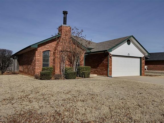 MOVE-IN-READY!!! Looking for a great starter home, investment property or downsizing? Your search is over!!! Immaculate 3 bed/2 bath home offering 1,568 sq ft (mol). Neutral color palette is a blank canvas awaiting your personal touch. Spacious living room has great natural lighting and a fireplace perfect for the chilly Oklahoma weather. Large dining area with pass-thru to the kitchen is perfect for entertaining guests. Charming kitchen with eating space, electric range/oven, dishwasher, built-in microwave and refrigerator. Fabulous master suite has access to the exterior patio. Master bathroom has his/her separate vanities, Whirlpool tub, shower and amazing storage. Utility room is off of the garage with additional storage and a closet with shelves. Nice secondary bedrooms and guest bathroom. Covered patio, fenced yard. Walking distance to Ralph Downs Elementary and PC North. Just minutes from retail shopping, movie theater and restaurants.