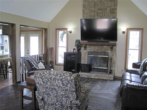 Location! Location! Location! Park Hill School District & walking distance to Zona Rosa. The main level of this raised ranch offers 3 bedrooms, beautifully updated kitchen & 2 baths, great room with wood burning fireplace overlooking the backyard oasis with sparkling above ground pool & hot tub. Family room with 2nd fireplace, den/nonconforming 4th bedroom, 3rd full bath & laundry area round out the lower level. Additional features include newer windows & siding, fresh interior paint, cathedral & vaulted ceilings.