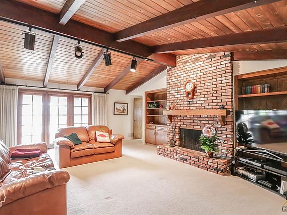 Spacious Olive Drive home with a sparkling pool on over 1/4 of an acre corner lot, in an award winning school district. This Carter Built home boasts 2449 sqft, 4 beds, 2.75 baths, split wing floor plan and custom built-ins through-out! Upon entry, the grand living room w/vaulted tongue & groove wood beam ceilings, brick fireplace and built-in cabinetry overlook a lattice-covered outdoor courtyard. The east wing hosts 2 beds (one w/walk-in closet), bathroom, laundry rm and master with a built-in vanity and walk-thru closet that leads to the master bath. The west wing includes the kitchen, dining area, an bathroom, utility room and large bedroom with a wall of built-in custom cabinetry; perfect for a home office, den, or playroom. Outside, the home wraps around a shaded central courtyard which opens to a fully covered patio leading into the yard with a sparkling pool and large garden area that could easily be converted into RV. Let's not forget a side-entry garage. This one won't last!