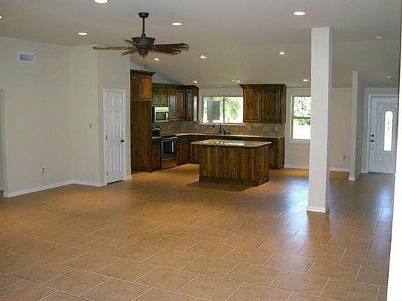 MUST SEE INSIDE. Very open and large concept throughout the kitchen, dining and living room all with tile flooring. Raised ceilings in kitchen, living and bedrooms. Split bedroom arrangement. Large backyard. Sprinkler system is on orchard irrigation water through AMUD. Nice trees. Fenced yard. Great location. Ready for immediate move-in.