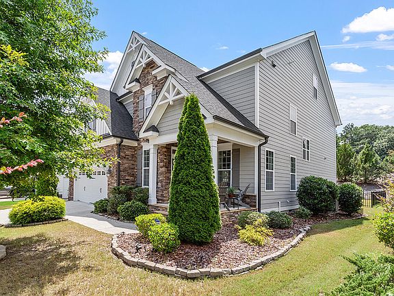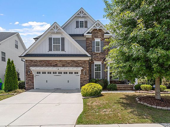 Welcome to this stunning 5-bed/ 4-bath home in Stonehenge Manor! The open FP spans over 3,300 sq. ft, & offers endless outdoor living and entertainment possibilities! Through the welcoming front porch is a dining room ideal for gatherings w/ a coffered ceiling, wainscoting, & a chandelier. The gourmet kitchen boasts Quartz countertops, a large island w/ a sink, under cabinet lights & a WI pantry, leading to a cozy family room w/ a gas FP and built-in bookshelves. The screened porch w/ a ceiling fan & vaulted ceiling leads to the exterior deck. The downstairs bed w/ ensuite bath is perfect for guests or an office. The primary suite includes trey ceilings, a WI closet, a soaking tub & a WI shower. A princess bed w/ an ensuite and WI closet, and 2 more beds w/ a shared bath complete the layout. The third floor offers over 1,000 sq. ft. of W/I attic w/ rough plumbing for a bath. Add. features include a 2 car garage, fenced backyard, and community trails. Conveniently located under 30 min. from Durham and dwntwn Raleigh. Make this your forever home!