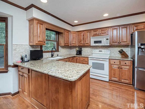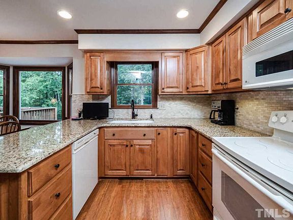 Prime North Raleigh LOCATION! This 3 bedroom, 2.5 bath home has NEW HARDWOOD FLOORS! Eat-in Kitchen has UPSCALE cabinetry and GRANITE! Separate dining and living room. Basement with a 2 car garage and unfinished space could be a Workshop or MANCAVE! 1 car carport under the deck. Bedrooms and laundry are conveniently on the same floor. Nice wooded lot with peaceful walking trails and near by pond. Recently renovated, new flooring, new paint on main level. This one won't last. Take action today!
