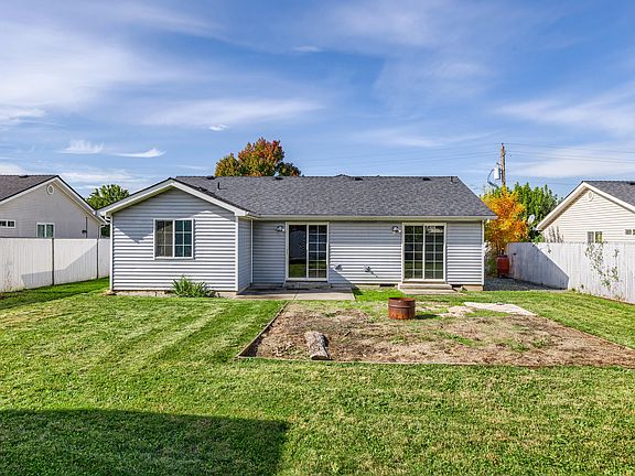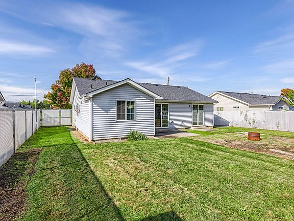 Cute home with large level fenced back yard. Fresh interior paint and new carpet. Primary suite has walk in closet, private bath, slider to back yard and is on the opposite side of home from bedroom 2 and 3. The main bath is between the other two bedrooms. Cathedral ceilings and open floor plan. Slider from living room to back yard as well. Kitchen is large with lots of work area. Really nice home and move in ready.