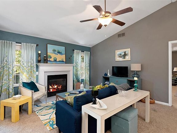 Impeccably maintained, 2 BR, 2 Bath Villa waiting to meet its new owner! You will walk in & instantly notice pride of ownership & modern taste in this well-appointed home! Not into yard work? Don't worry about that with the EXTREMELY LOW ASSOCIATION FEE! As you step into this duplex-style unit, enjoy the surprising open-concept floor plan, walking down the foyer! The vaulted common area is anchored by a charming fireplace & flanked with room for formal dining! The kitchen offers white cabinetry, ample storage space, & a delightful bay window area perfect for a breakfast nook & overlooking your deck which abuts to your tree-lined backyard! The luxurious master suite showcases a private full bath & spacious walk-in closet! Don't forget about the 2nd BR, full bath & laundry area that complete the living areas! This home also brags of a 2 car garage. Maintenance-free living & ready to move into, don't miss your opportunity to sweep this villa up before someone else does!