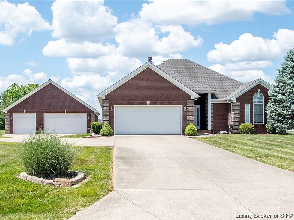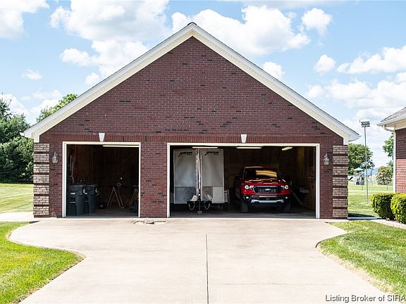 This immaculate one owner home is exquisite in its detail inside and out. Both home and the 33'x35' detached garage has been expertly built using the unique "coin" corner design. The front porch and rear covered patio were beautifully designed with porcelain tile rather than concrete. The yard has been meticulously maintained to include the flag, flag pole and bird feeders around a lovely rock garden. The living room boasts high ceilings with a beautiful hearth and wood burning fireplace that has been converted to electric. The sellers have the components needed to return it to a wood burning fireplace. The kitchen has updated Kitchen Aid appliances that include the dishwasher, microwave and stove. The windows are adorned with custom blinds throughout the home. Two bedrooms on one side of the home have lighted step in closets. The spacious primary bedroom en-suite invites you for a soak in the claw foot tub and has two walk in closets. Enjoy the added living space in the basement with plenty of unfinished storage area that is home to a working indoor outhouse, closet, sump pump with battery back up and an 80 gallon water heater that is less than five years old. The expanded driveway, the checkerboard vinyl floor in the attached garage and the loft in the detached garage are just a few more details that will have you saying, "there's no place like this home!" Sq ft & rm sz approx.