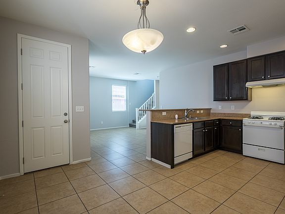 Beautifully maintained two-story home located in the desirable Mountains Edge community! This 3 bedroom, 2.5 bath property offers open living space with tile floors downstairs, carpet upstairs, and a bright layout that seamlessly connects the kitchen, dining, and living areas. The kitchen features granite countertops, pantry, and ample cabinetry, while the spacious primary suite includes a walk-in closet, dual sinks, and separate tub and shower. Additional highlights include a fenced backyard with very high walls for added privacy, two-car attached garage, and a quiet cul-de-sac location. Built in 2010, this home combines modern comfort with the convenience of a master-planned community, close to parks, schools, and amenities.