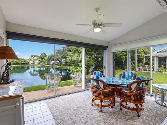 Nestled amongst nature with full lake and golf course views and located on one of Palm Aire's most desirable and private streets, this 2 bedroom plus a den, 2 bath maintenance free villa has it all! Effortless and elegant and featuring an easy floor plan designed with relaxed Florida living in mind. A warm and inviting foyer sets the tone for the rest of the home. A light and bright kitchen complete with stainless steel appliances and flooded with natural light leading in to the open living space complete with a large enclosed Florida room to enjoy the finest lake views all year round. The oversized master suite complete with 2 walk in closets boasts plenty of storage options. The master bath has dual vanities, a soaking bathtub and a large shower. The popular community of Palm Aire features a community pool, optional golf at the Palm Aire country club, fitness, tennis and pickle ball courts and so much more for you to enjoy peaceful daily living with everything Sarasota is best known for on your doorstep.