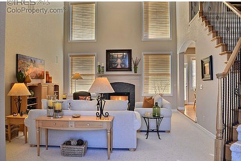 Picture perfect in Poudre River ranch! You're going to love this four bedroom, four bath 2-story! Huge main floor master suite with 5 piece bath and large walk-in closet, cathedral ceilings, 2 upper level bedrooms, with Jack & Jill bathroom, wood floors, granite counters and maple cabinetry! Finished basement with bedroom, office and large family room with wet bar. Backs to open space! Two patios, great landscaping, new roof and a 3-car garage!