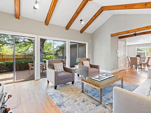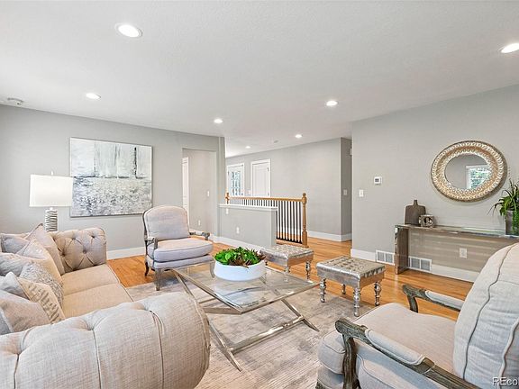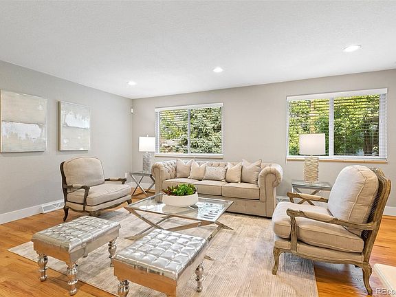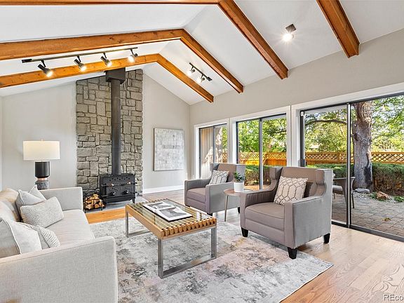 Well manicured, mature landscaping and great curb appeal welcome you to this fabulously updated ranch in Columbine Hills. Enjoy amazing Colorado sunsets from the covered front porch and step inside to enjoy this gorgeously renovated home. The fully remodeled kitchen with shaker cabinets, stainless steel appliances and quartz countertops is the hub of the open and flowing floor plan of the main level offering gleaming hardwoods throughout. Off one side of the kitchen is a large dining area with a gas fireplace, which flows seamlessly into a spacious, vaulted family room with gorgeous beams, a wood-burning stove and a wall of sliding glass doors offering access to a lovely, and private, exterior patio. On the other side of the kitchen, an expansive living room provides additional living space and views of the lush backyard. Down the hall are two ample-sized bedrooms, an updated full bathroom, and a primary bedroom with recently remodeled 3/4 en suite bathroom. Head downstairs to find a huge bonus room perfect for movie nights, kiddo play area, or guest living space as well as a large conforming bedroom, recently updated 3/4 bathroom, laundry area and storage room. The backyard is well-maintained, private and offers a healthy garden area. The home was recently outfitted with AC and the remainder of the mechanicals are newer as well. Also enjoy a mudroom as you enter the home from the garage perfect for organizing coats, shoes, hats, backpacks, etc. Just a short bike ride or drive from the Platte River Trail, easy access to C-470 and the foothills for local hiking and biking, close to Aspen Grove shopping and restaurants as well as a short distance from Downtown Littleton. All there is left to do is move in and enjoy!