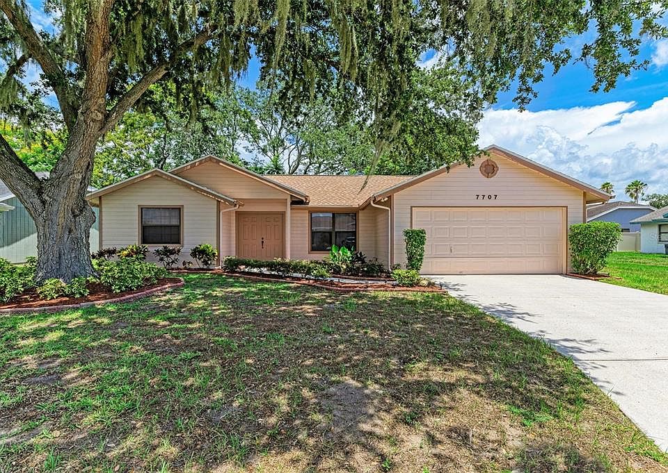 The LOCATION makes this listing so desirable! This spacious, airy, bursting with natural light home offers 3 bedrooms, living room, dining room, family room, 2 bath split plan with an attached two-car garage. Home is situated on a oversized lot and is neatly nestled in a quiet, well-maintained subdivision. There is a large en-suite master bedroom with a walk-in closet, a shower, double vanity and a water closet. The remodeled guest bathroom has a shower/tub combo. Home features cathedral ceilings, slider glass doors leading out from all areas of this home to a large screened-in lanai for great entertaining. Brand new HURRICANE RATED ROOF (May 2023). Entire exterior has been repainted in June 2023. If school system is important, the elementary school is close by; a fire station, and a brand-new park with fitness trail, pickle ball courts and dog park are two blocks away. Low annual HOA and no CDD Bond. Conveniently located off University Parkway close to all the essentials for shopping and getting to Sarasota-Bradenton International Airport, Downtown Sarasota, UTC Mall and I75.