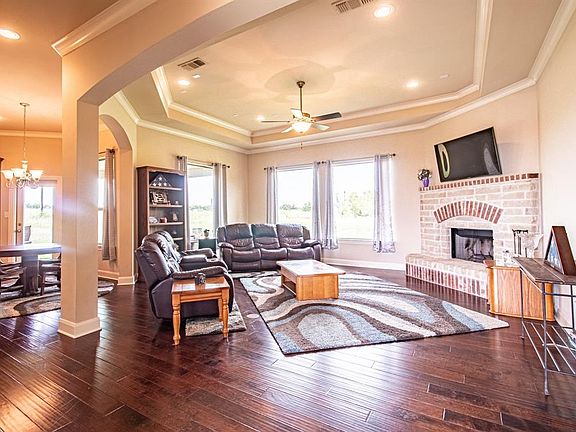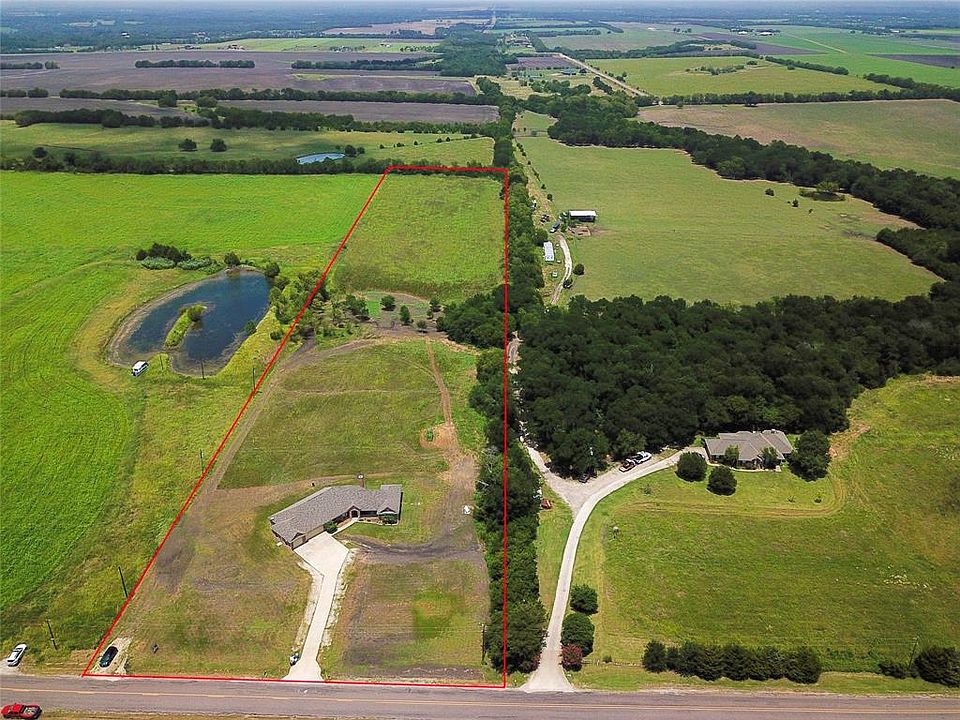Don't Miss this opportunity Enjoy the sunrise & sunset and plenty of wildlife from big covered porches. Great homestead in beautiful Blue Ridge, TX offers Nearly 10 acres -currently harvesting hay & grass for ag status- & ready for a new family. This is NOT 'builder grade'; Come see for yourself the upgraded fixtures, granite, tumbled marble, hardwood floors, tray ceilings and great attention to detail in this Custom Home nestled in the peace and quiet of N Tx. One-story, deep-oversized 3 car garage; ample interior storage, 4 big bedrooms; & additional office-flex; Floorplan has superb flow with 2 full & 1 central powder bath. Huge laundry with loads of counters & storage cabinetry. Large kitchen & island.
