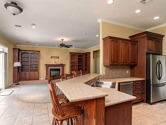 WOW!! Dare to Dream Big!! This exceptional country property has what dreams are made of!! A beautiful brick home on +/- 10 acres overlooking a majestic pond with a relaxing fitness facility with indoor heated resistance swimming pool and an amazing 40' x 30' shop!! Something wonderful for everyone in the family! The high roofline of the home, with brick and stone exterior and arched windows, has attractive curb appeal. The custom front door with sidelight panels and transom bring in additional natural light and make the home feel bright and inviting. The living room features high ceilings, custom fireplace with brick hearth, wood mantel with exquisite trim carpentry and custom built-in bookcases and cabinets. The gourmet kitchen is open to the family room and features cabinets matching the living room craftsmanship, stainless steel appliances, and beautiful Silestone countertops with a long eat-at-bar. There is also an area for a small breakfast table with a wonderful view of the large fenced backyard. The large room next to the kitchen is currently being used as a music room but was originally the formal dining room. Nearby is a large walk-in pantry. The half bathroom features a pedestal sink with attractive detail on the edge and matching detail on the toilet tank lid. The bedrooms are a split plan. The spacious master suite features a trey ceiling, sitting area with a view of the backyard, large bathroom with jetted tub, long vanity with double sinks, private toilet and large walk in closet that also serves as a storm shelter/safe room. The three additional bedrooms are spacious with nice size closets. The hall bathroom has a long vanity with double sinks and custom cabinets, tub/shower combination and additional storage cabinets and drawers in the hallway. The utility room has additional built in cabinets and a built in ironing board and clothes rod. Get in shape for summer and stay fit all year long with the fantastic heated Endless Wave Pool! It features a resistance wave machine in a 20' x 10' x 5' pool made of fiberglass with a pool cover. The 24' x 28' recreation building is wrapped in windows to bring in sunlight and the interior ceiling of the building is stained car siding. There is space around the perimeter of the swimming pool for additional workout equipment and seating. A Carrier wall unit heats and cools the building. It's great fun for the whole family! The outdoor kitchen features a gas grill with an underground connected to a 500 gallon propane tank. Plus there is a fire pit to warm-up by while enjoying roasting marshmallows and spending time with family and friends. The backyard playground set has a swing, slide, climbing wall and fort. Make lasting memories fishing in the nearby pond and enjoy a picnic under the nearby shade trees. A delightful workshop is a 40' x 30' metal building with open beams and rafters, 220 electric, two 10' garage doors with garage door openers, concrete floor and a large parking pad in front of the building. The property is located in the Richmond School District in Stillwater. This wonderful property will check so many boxes on your wish list! See it today and start living your dream!!