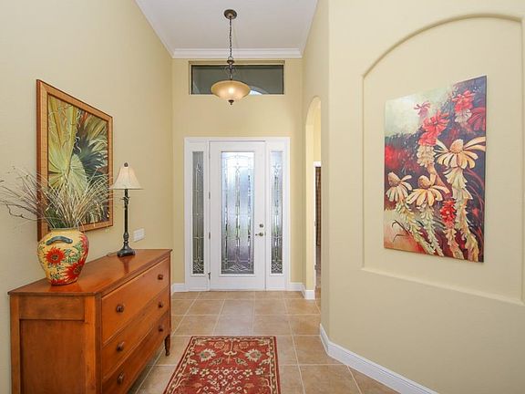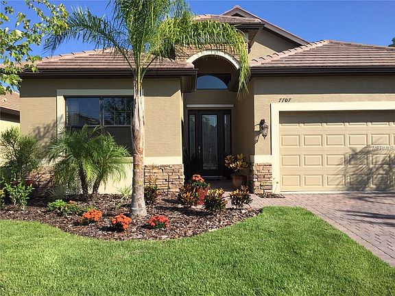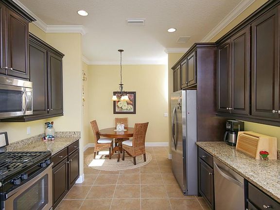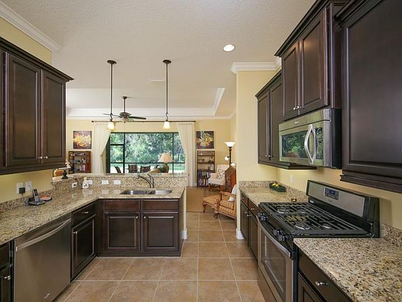 Pristine 2 bedroom, 2 bath home is located in a gated, maintenance free community of Riva Trace. A glass leaded front door enhances the natural sunlight to welcome you upon entering the foyer. Open great room plan allows the flow to move from room to room smoothly. Crown molding, accented baseboards and tile flooring add to the warmth of each room. A separated dining area is perfect for entertaining family and friends. The Living room with tray ceilings, a large picture window and the triple sliding glass doors, continues to capture the natural lighting that this room offers. Stainless steel appliances, granite counter tops, 42 in solid wood cabinets, under cabinet lighting are bonuses for the kitchen. But there's more lots of storage and counter space with a breakfast bar and separate eating area! Den/study has hardwood floors, sellers will contribute adding closet to complete this into a 3rd bedroom. Master suite is roomy, glass door opens to the lanai and with walk-in closet. Master bath includes dual sinks and walk-in shower. The living room opens up to the screened/covered lanai with brick pavers flooring. This home is on a primo lot with a private setting. No CDD Fees. Close to UTC Mall, top restaurants, shopping, recreational/cultural activities, I-75, gulf beaches, St. Petersburg and Tampa.