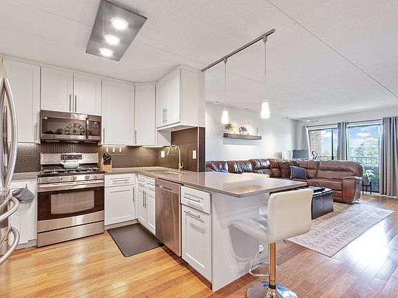 Largest 2 bedroom unit in building features spacious updated kitchen with white cabinets, quartz countertops, stainless steel appliances, breakfast bar, separate dining area and opens to living area with sliding glass doors to covered 12' X 4' balcony. Oversized primary bedroom with walk in closet, en suite bathroom with modern finishes, second bedroom across from updated bathroom, washer and dryer in unit (included), new combo a/c & furnace and hardwood floors through out unit. Heated garage parking is space 1 right outside the elevator door, ample storage space on second floor near unit, 44 unit secure building with 2 elevators, maintenance on site, front courtyard, steps to a convenient store, walk to Schiller Woods and Harlem Irving Plaza with Amazon Fresh, Target Grocery, Walgreen's, Nordstrom Rack and movie theater, restaurants, Mariano's & Aldi close by. Easy access to I-294, I-90/94 expressways, close to O'Hare Airport and bus stop outside building. Building is FHA approved, no dogs and no rentals allowed.