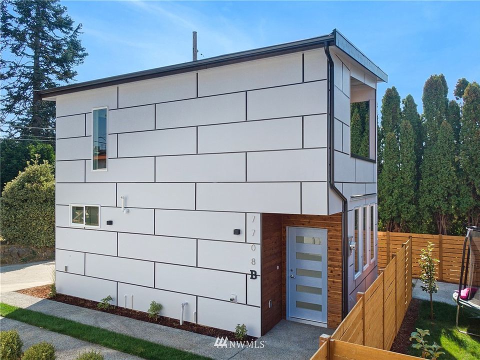 Brand New Modern Stand Alone Home in the Beloved Gatewood Neighborhood of West Seattle! Beautifully and thoughtfully designed to maximize spaciousness and efficiency. Open lower level with living room, kitchen with bar seating, storage and powder room. Upper level Owner's retreat with walk-in closet, massive en-suite bathroom, private balcony, and laundry. Incredible location close to Lincoln Park, shops, grocery & restaurants. Home equipped with AC! Off-street parking pad.