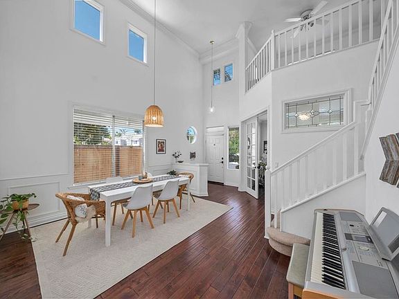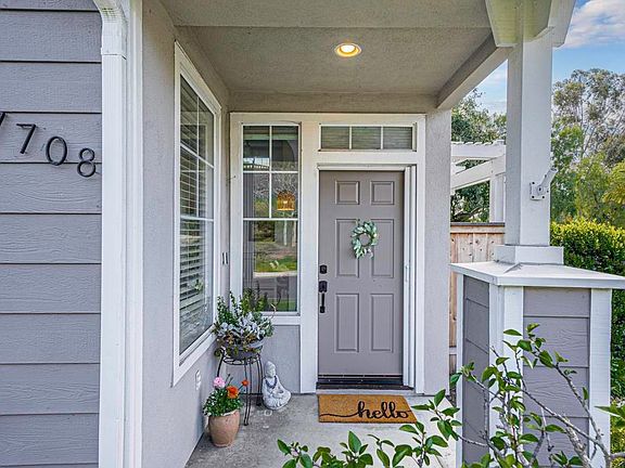 This gorgeous home sitting on one of the best lots on a quiet cul-de-sac street has all the upgrades and privacy you’ve been waiting for! Surrounded by trails and free space, there are no neighbors in front, behind, or to the south of this bright & light home that features owned solar, air conditioning, a spacious master retreat and a downstairs office. A lush and well-maintained front yard welcomes you through the door where you’re greeted with high ceilings and windows that truly bring the outdoors in. This 2217 sqft 4 bedroom, 3 bathroom home gives you ample space to live, storage for everyone, and room for guests. The bright, open concept kitchen is truly the heart of the home with stainless steel appliances, granite countertops, recessed lighting and two sets of mahogany french doors that lead to the private backyard. Take your coffee outside and relax on a hammock in the sun. The upstairs living space includes custom closets, laundry room and a loft that can be an additional office space or bedroom! The private master retreat includes a huge walk-in closet, soaking tub and views of nature and trees. The garage is electrical vehicle ready and equipped with Gladiator paneling and Gladiator storage systems to allow for the organized garage of your dreams. The solar was installed with a 5KW back up battery. Recent upgrades include a QuietCool whole house fan, new water softener, Nest Technology (thermostat, smoke alarms & doorbell), new fencing, exterior and interior paint, and garage door. Water heater and appliances replaced within the last 4 years. Located in one of the best school districts in the county, this beautiful home offers memories to last a lifetime, exceptional privacy, community pool & jacuzzi, low HOA, nearby parks and shopping, walking trails, great proximity to a warm day at South Carlsbad State Beach. This new space can forever be your source of relaxation and serenity. Welcome home!