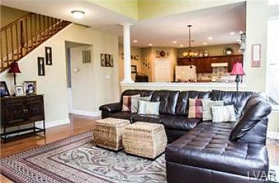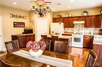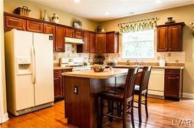 Dream home! This 4 BR, 2.5 BA East Penn colonial on a quiet cul-de-sac has it all. Open floor plan, 9' ceilings, crown moulding, and many other upgrades throughout. Gleaming hardwood floors throughout the main living space plus the grand staircase. Living and dining rooms with decorative columns greet guests upon entry then give way to the corner office space and two-story family room full of windows. Perhaps the heart of this home is its gourmet kitchen complete with oversized center island/eating bar, maple cabinetry, tile backsplash, recessed lighting and double pantry. Slider door leads to the home's private, tree-lined backyard. The second floor offers a lavish Master Suite with double door entry, corner soaking tub and huge, walk-in closet; three additional nice-sized bedrooms; main bath and a large laundry room. Additional convenience features include powder room on first floor, comfortable gas heat, gas cooking, full basement and two car garage. Outstanding location!