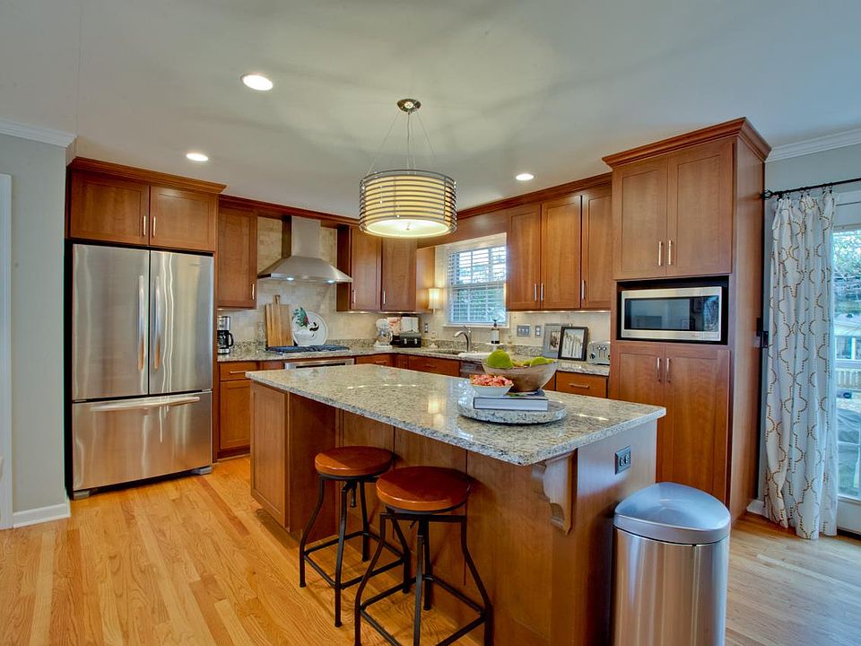 - KITCHEN DESC: Smooth Ceiling, Window Cov, Granite Countertop, Wood Floor, Kitchen Island, Recessed Lighting