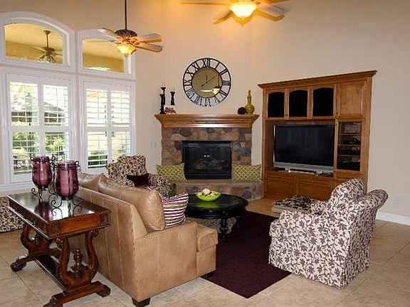 Live the Good Life, in this stunning Custom Vision Home located in prestigious Bellavierra. As you pass through the foyer and enter the great room you cannot help but be impressed by the way the expansive open kitchen flows freely into the great room and casual dining areas highlighted by stunning views of the rear grounds. The kitchen itself has all the amenities you would expect as well as abundant cabinetry and a fantastic wrap around breakfast bar making it truly the center of the home. There are two bedroom wings, one on each side of the home with two bedrooms each. This contributes to the versatility of this fantastic floor plan which also includes a formal living and dining room making entertaining a breeze. The owner's suite features a spa tub, dual vanities, fireplace and private access to the park like rear grounds where you will enjoy a small cooling pool with beach entry that doubles as a soothing heated spa. Go see it today! Murphy bed to be excluded from sale.