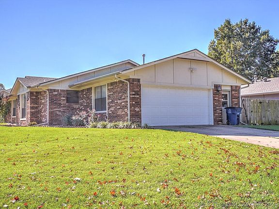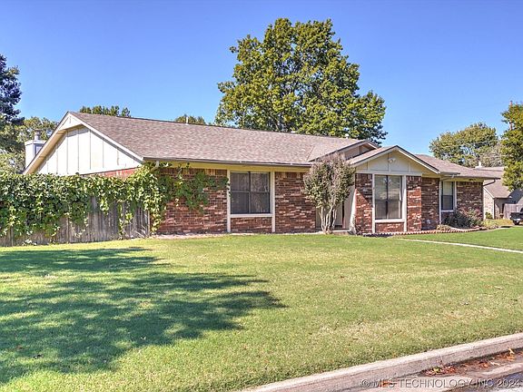 Great full-brick home situated on a corner lot in desirable Union schools! Excellent location in the heart of south Tulsa with easy access to shopping, restaurants, and HW 169. This 3 bed 2 full-bath home features a family room with vaulted ceilings and cozy brick fireplace. The kitchen features granite countertops and a nice-sized breakfast area. Off the kitchen is a separate spacious laundry room with extra storage. The 2-car garage features added storage and a work area. The office/dining room offers flexibility to meet your individual needs. The main bedroom features an en-suite bathroom with tiled shower and large walk-in closets. Vinyl-wood flooring is present throughout the bedrooms and living areas. Don't miss this charming home! Seller will remove back patio enclosure if desired prior to closing.