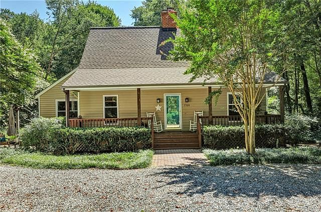 Updated & Open Cape Cod in convenient close in West End location! You must see to appreciate the private park-like 1.1 Acre lot. Features include large living room w/fireplace & gas logs, open to updated eat in kitchen w/granite counters, marble backsplash undermount & recessed lighting, large island w/dual fuel gas cooktop & convection oven & more. Sunroom features vaulted ceiling, 4 skylights, brick floor & surrounded by oversized windows for great natural light. Laundry room convenient to kitchen has storage & door to rear yard. First floor Master bedroom w/his & hers walk-in closets, updated full bath w/raised vanity, tile shower stall w/bench, heated floors & great storage. Sitting room/office/study off the Master with custom built-ins, 2 closets and access to 2nd full bath on first floor. Second floor includes 2 spacious bedrooms w/double closets, large bonus room which could easily be a 4th bedroom by simply adding a closet. This room also has door to walk attic storage, a scuttle to additional attic storage above and a door to exterior stairs. Third full bath is off the hall w/tub & shower. Gas heat & central air 2017, Country front porch, circular drive and more!