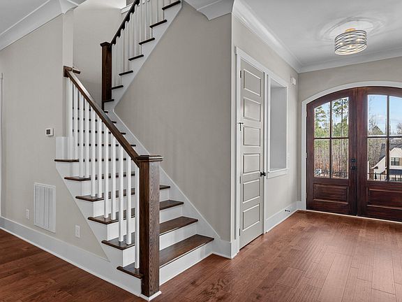 Exquisite Modern Farmhouse by Glen Arbor Homes NC in popular Camberly. Builder is offering a 2-1 interest rate buy down with an acceptable offer. See documents for more details .A REAL CHEF'S KITCHEN with a 48'' dual fuel range with two ovens, wood range hood, pot filler, butler's pantry and a huge island with Calacutta quartz. Double wood front doors, 10 foot ceilings, hardwoods, two art niches and a dining room w/ coffered ceiling. Great Room w/ fireplace and built ins, 1st floor owner's suite w/ tray ceiling, bath with freestanding tub and huge walk in closet across from 1st floor laundry. Mudroom and ''secret room''. 2nd floor Landing/loft with reading nook, huge bonus room with beverage fridge and wet bar, Jack & Jill bedrooms and bath, 4th bedroom w/ bath. Walk-in closets and quartz countertops throughout. Home Office w/ closet, Screened porch w/ outdoor fireplace and grilling deck backs to woods, HUGE yard, 4 bedrooms 3.5 bathrooms. HOA 1800 Annually.
