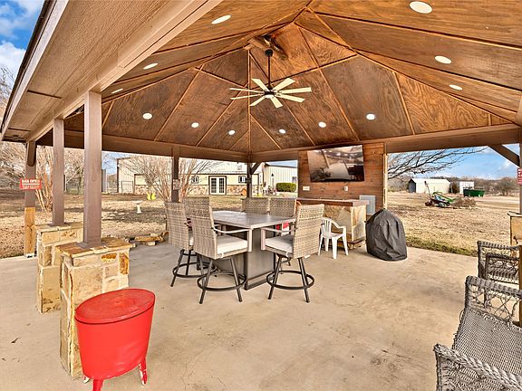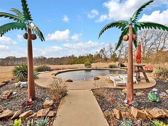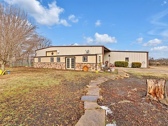 Experience the perfect blend of Texas country living and custom craftsmanship at this exceptional barndominium set on 13.34 sprawling acres in Howe. With room to roam, work, and play, this property offers incredible versatility for those seeking privacy, space, and functionality without sacrificing comfort. So much room to add animals, livestock, bees, gardening or even an orchard to make this Ag exempt, or you can build whatever you want. A rare opportunity to own a truly unique property with acreage, an active tree-lined creek, pool, and off of the beaten path for complete privacy and seclusion. Thoughtfully designed, this custom-built barndo offers 3 bedrooms and 2 full baths with one sharing the laundry room making it very spacious. The kitchen has tons of cabinets, with a little cute island to cook up those down home meals. The large living room is perfect for hosting those family traditions. The expansive 6-car attached garage is every man's dream as it provides endless space for vehicles, toys, or a workshop, complemented by an additional 2-car carport for added convenience right there at the door, where they happen to love to keep their mandatory John Deere tractor. Step outside to your completely private outdoor country oasis featuring an in-ground gunite pool and a covered outdoor party bar, perfect for entertaining, relaxing, or enjoying wide-open Texas sunsets or floating in that pool under all those bright stars. Outdoor possibilities will keep you outside all the time. For those animal lovers, they enclosed a room for the dogs to stay when not home, accessed by the doggie door when they don't want them in the backyard. No muddy paws on those rainy days and nights. This property has everything you need with room to grow.