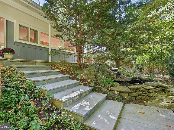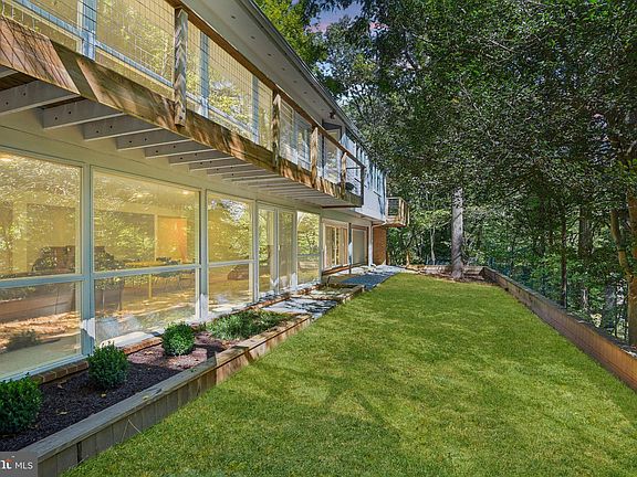 Mid-Century Modern in Carderock Springs neighborhood, renowned for its exceptional architecture, 7709 Glenmore Spring Way offers a rare opportunity to own a home unlike many in the DC area. This stunning property sits high on a knoll, overlooking an expansive .4-acre lot with tree-top views, and walls of Anderson windows & doors, a hallmark of mid-century design. Professionally grade kitchen boasts high-end appliances and sleek flat-panel cabinets, large primary suite offers a private deck, walk-in closet, and heated floors, plus multiple outdoor spaces creating a serene environment. Additional features include a large oversized two car garage with direct access to the terraced and flat backyard and lower level patio, tons of extra storage on two levels, covered front porch, extensive hardscaping, & two fireplaces. The lower level also features a floating staircase, walls of windows & doors, second kitchen, bedroom, & full bath. This property allows it's next owners exclusive opportunity to join Carderock Swim and Tennis club just 3 blocks away. Multiple swimming pools, tennis courts, pickelball, camps, and much more. The neighborhood's recognition on the National Historic Registry showcases its enduring charm, with covenants, an architectural board, and a tree committee dedicated to protecting its unique character and natural surroundings. Located in the coveted Pyle/Whitman school district and with easy access to major commuter routes, this home delivers the perfect balance of size, floorplan, and private lot, making it a truly unique find. Don’t miss this rare opportunity to live in one of the most well-preserved Mid-Century Modern communities in the region.