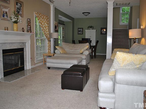 Charming N Raleigh cul-de-sac home with 4 BRs and 2.5 baths. Large family room with gas log fireplace. Kitchen cabinets freshly painted with Stainless appliances (2 yrs old), granite counters, and pantry. Upstairs master bedroom with vaulted ceiling, walk-in closet, bathroom vanity with dual sinks, tiled floors & tiled garden tub/shower. Covered front porch with swing, back patio, back deck, and fenced yard. Roof replaced in 2013. Located close to shopping, dining, & I540. No HOA dues.