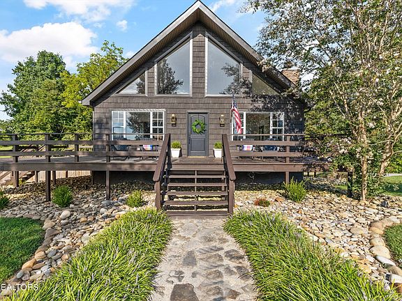 Beautiful chalet with gorgeous mountain views on 9 acres! (2 lots) The house is situated on a very quiet road with a level yard in the front, woods in the back, and generous road frontage. Pasture land across the street with views of the Smoky Mountains, Kitts point, and House Mountain. The sellers have developed extensive trails throughout the property for hiking, mountain biking, and motorcycle riding. Look for the cool trail marker. Abundant wildlife. Land has 2 parcel numbers. Seven acres with the house and another 2 acre lot. No HOA, no restrictions, and no city taxes. You can have animals, set up a deer stand, build a big garage, park your RV, and enjoy your land as you wish. Country living at its finest!