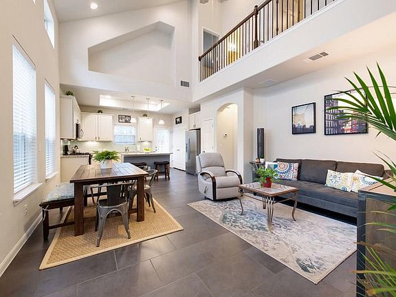 Spacious, 2-story condo filled with natural light! Soaring ceiling in living/dining room leads to open kitchen with island, white cabinets and granite counter tops. Beautiful tile throughout main living spaces. Master bedroom down with over sized shower, double vanities and walk-in closet. Gorgeous staircase with iron balusters leads to large bonus/flex space overlooking living room. Patio space with generous yard and wooded view. Close-in location w/low maintenance!