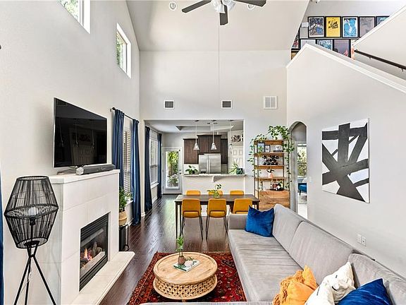 Fantastic south Austin home with so much Charm ~ High cathedral ceiling creates an open & bright floor plan w/excellent natural light ~ Kitchen features granite countertops, wood cabinetry & breakfast bar ~ Spacious master bedroom w/fantastic master bath ensuite includes double vanity, walk-in shower & huge walk-in closet ~ Second multi-use area upstairs ~ Wonderful tree-lined backyard w/large deck, trellis & landscaping.