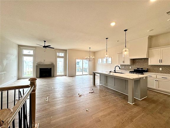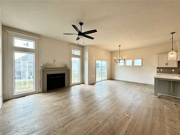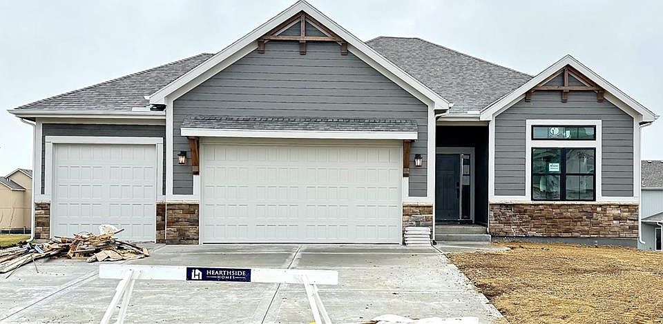 The McKinley Modern Farmhouse, 1.5 reverse by Hearthside Homes. The main floor has abundant living space with a 3-car garage, irrigation system, and covered deck. The open design concept won't disappoint with a large island, fireplace, open staircase to the finished lower level, and so much more. The massive walk-in closet in the primary suite leads directly into the laundry room. The storage is impressive in the lower level and has a built-in wall bar in the family room, 2 bedrooms, and a full bath. The lower level walks out to an extended patio. Taxes, Sq ft, and room sizes are estimated. In addition to the 12-month builder warranty, Hearthside Homes goes above the industry standard by hiring impartial professionals to perform thorough inspections on their completed homes. This comprehensive assessment includes cosmetic and mechanical inspections, a sewer line inspection, and HVAC duct cleaning. Benson Place residents enjoy an abundance of amenities including two community swimming pools, children’s splash park, fishing lake, playground, ample green space, scenic nature trails. Close proximity to major highways and interstates allows for easy access to downtown Kansas City, the new Kansas City International Airport and several of the area’s top shopping and entertainment centers.