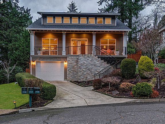 Contemporary meets Traditional...nestled between Multnomah Village & Garden Home. Open concept living - updated kitchen w/ quartz counters, hardwood floors, soaring ceilings, huge windows. 2 master suites, bedroom + full bath on main level. Professionally designed, fenced yard w/ multi-level, Trex deck w/ built-in benches, landscaping & paths on a large cul-de-sac lot. Oversized garage, shop & storage. Walk to coffee, shops & parks!
