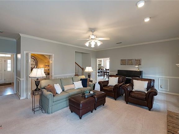 Filled with Southern Charm! If you are looking for space to spread out, plus large bedrooms, this is the home for you! Kitchen boasts granite counter tops, and Kitchenaide appliances to include warming drawer. Freshly painted neutral colors through out. Spacious living room with gas start fireplace, wall of built ins, and convenient wet bar closet. Enjoy the view of the park like back yard through twin sets of French doors! FIRST FLOOR, generously sized, remote master suite! Master bath features granite topped vanity, ceramic tile flooring, and two walk in closets. Remaining 3 bedrooms are up! Plus a Family Sized bonus room that could easily be a 5th bedroom. It has a built in desk and cabinet storage! Enjoy sweet tea on the front porch, or back covered patio. Fully fenced back yard, and conveniently located to hospitals, shopping, and restaurants.