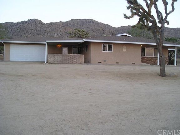 another amazing transformation... completely refurbished home on a large lot high up in quiet south side Joshua Tree. Nearly 3/4 acre fenced with view of mountains to the south and a breathtaking panorama looking down on Joshua Tree. 3 bd 2 ba with bonus room, oversized 2 car garage and a carport, 3 storage sheds, 2 patios, newer roof with new HVAC and evap. New carpet, tile and laminate flooring throughout, new interior and exterior doors, including the garage door. Kitchen and baths have tile counters and new hardware on the refinished cabinets. New light fixtures, dual pane windows, range and dishwasher, new paint throughout... tiled patio... this one is a beauty in a superb location.