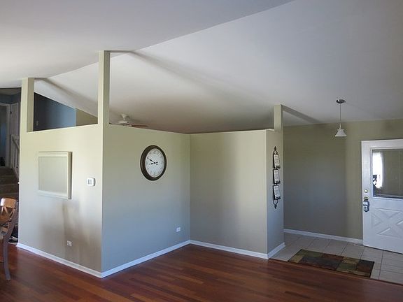 Very open & spacious tri-level home located on a large lot backing to an open field.Dramatic Cathedral Ceilings in Kitchen, Living Room & Dining Room. New HW floors in LR / DR. Updated kitchen w/ tile backsplash & all appliances. New carpet GR, FR ! Cozy FR w/ Fireplace wired for surround sound / fish tank Great Rm is large w/ skylight. Updated Bathrooms! Great location near schools, highway, park district/ shopping.