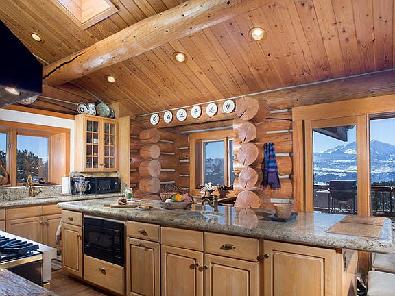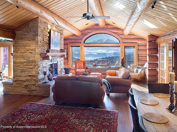 Nestled in the heart of the mid-valley, this luxury log cabin home is centrally located between Aspen and Glenwood Springs with breathtaking views of Mt. Sopris and the surrounding Elk Mountain Range. The interior of the home offers 4 bedrooms, a sleeping loft, 3 baths and 4,200 square feet of living space. With the master bedroom, kitchen and living area located on the same floor, this rental is perfect for a couple and large family gatherings alike. The gourmet kitchen complete with a Viking stove and Subzero refrigerator makes entertaining easy. A cozy breakfast nook is the perfect place to start the morning while the formal dining table is an ideal setting to check in after a day enjoying the outdoors. On the main level, a double sided gas fireplace invites you to relax after a long