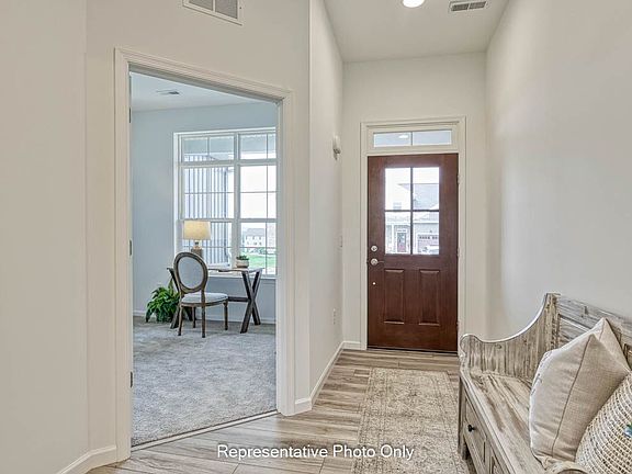 UNDER CONSTRUCTION: This 1-story townhome boasts 10ft ceilings, storage area, and a 2-car garage with mudroom entry that provides access to the laundry room.. Stylish vinyl plank flooring in the foyer extends to the dining area, kitchen, and family room. The kitchen features stainless steel appliances, attractive cabinetry with large center island, and quartz countertops with tile backsplash. The dining area provides sliding glass door access to the rear patio. The owner's suite with spacious closet includes a private bathroom with double bowl vanity and 5' tile shower. To the front of the home is the 2nd bedroom, an additional bathroom and pocket office.