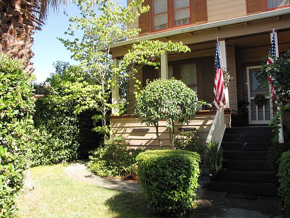 Motivated sellers! This Victorian home has been remodeled but still has managed to keep its original charm. This home boasts a formal entry with wrap-around staircase, large open family room with 11 ft ceiling with all the trim and detail you would expect, newer wood flooring, dual pane windows, added built-in bar, stainless steel appliances, original wood cabinets with glass doors and updated counters/stone backsplash in kitchen. This home comes with a formal dining room. The master is double-sized with built-ins and the upstairs bathroom has the original clawfoot tub! Upstairs has updated flooring as well. The backyard is fully updated with stone patio, pathways, and easy to manage. There is a two car garage in back with alley access and plenty of parking space in front. The HVAC is only 1 year old. Credit at closing towards repairs offered.